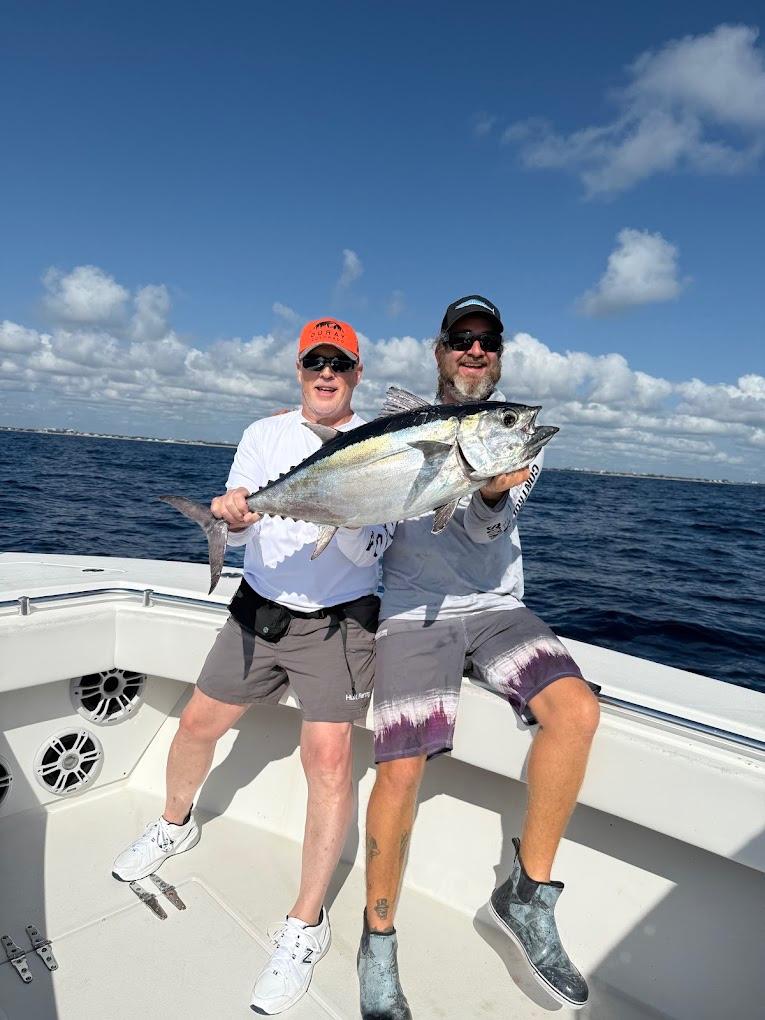 All I can say is wow. Definitely one of those trips you’ll remember forever. We had a bite right away but lost it, then not long after we landed a bonita. Soon after that we had a triple hookup with three different species. Non-stop excitement.