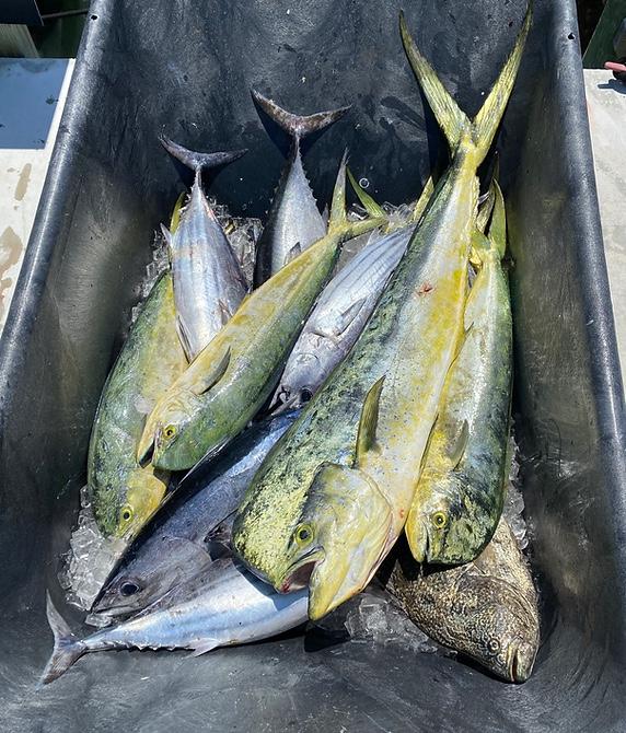 We target a wide range of species including pelagic, bottom, and exotic fish—whatever is biting on any given day. Trips typically stay within five miles of the inlet, keeping the action close and productive. Whether using live bait or dead bait, you’ll have great opportunities to hook into mahi, sailfish, tuna, snapper, and more.