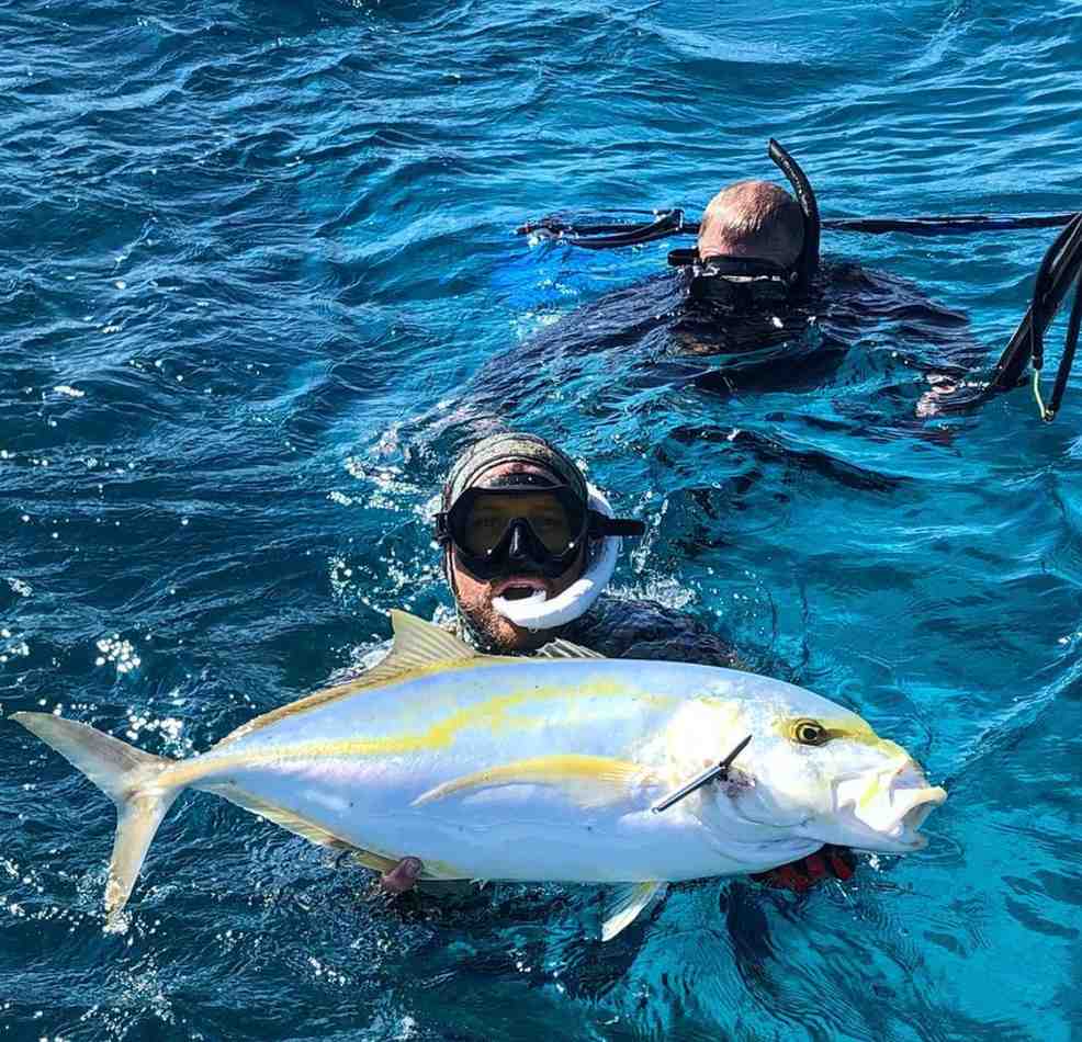 You’ll head out on a 27′ Contender powered by a 300HP Suzuki, providing a fast and comfortable ride for up to 5 guests. With quick access to remote reef systems and crystal-clear waters, this boat is perfectly equipped for a full day of freediving and spearfishing.